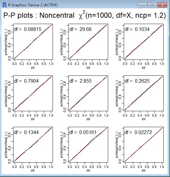 + plot(pp, sort(pchisq(rr <- rchisq(n,df=df, ncp=L), df=df, ncp=L)),