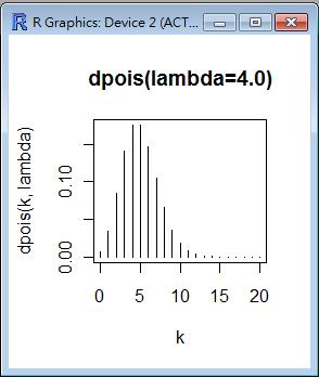 plot(k, dpois(k, lambda), type='h', main='dpois(lambda=4.0)', xlab='k')