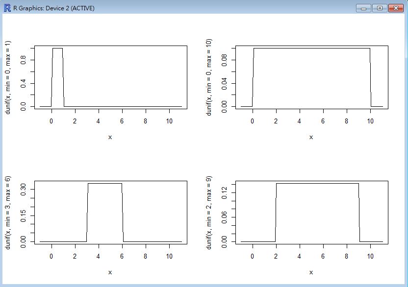 > curve(dunif(x, min=2, max=9), from=-1, to=11)