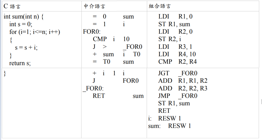在編譯器中,程式語言被翻譯成一串機器指令,然後再交給 CPU 去執行。