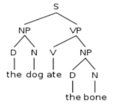 S => NP VP | 句子 = 名詞子句 接 動詞子句 |