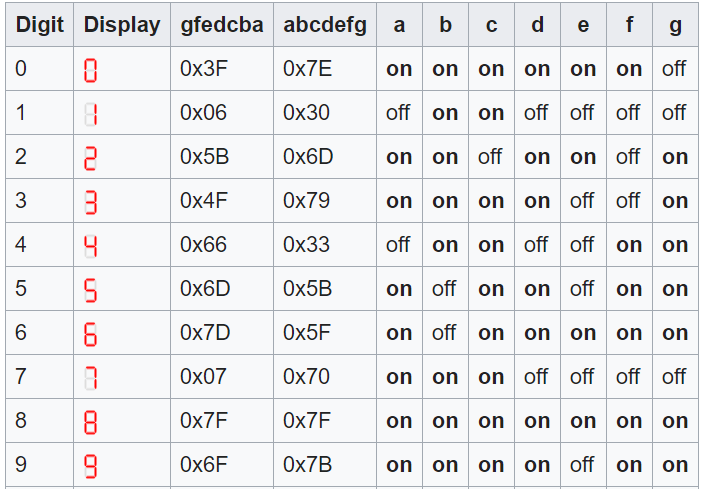 對於完全正確的的標準顯示樣式,也就是該《顯示樣式》屬於 0,1,2,3,4,5,6,7,8,9 ,那麼直接透過查表就可以回答: