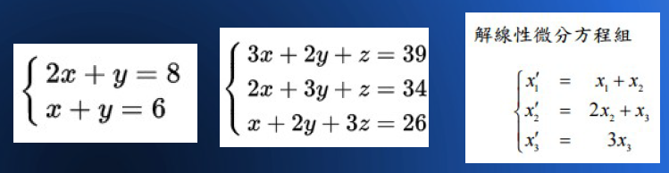 當然、有人可能會問, 假如我想解的不是方程式,而是像下列的這種《方程組》的話,那該怎麼辦呢?