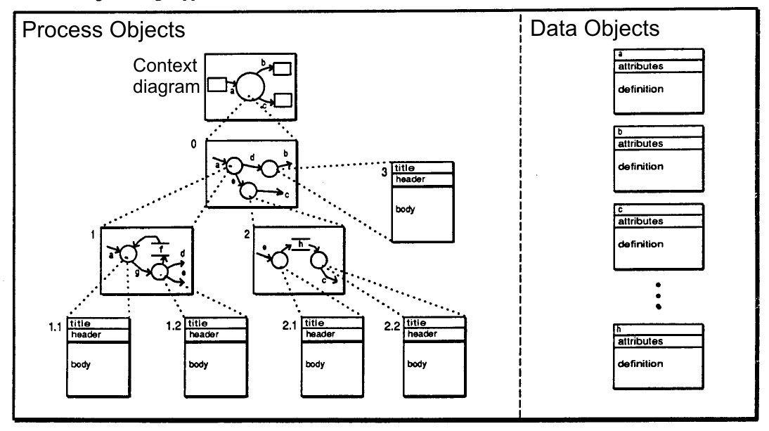 結構化分析時代的大師 Tom DeMarco 的分析方法就根據這樣的背景技術,設計了一系列的圖形與表格: